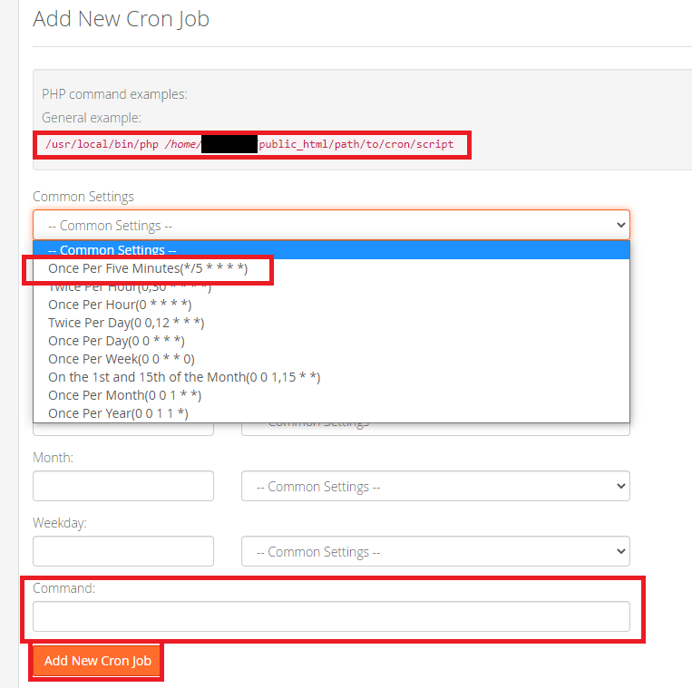 - Step 2: In the CRON Jobs panel add a New Cron Job. Select the minimum time that your hosting provider allows you to run a Cron Job (minimum you can get is 1 minute). Note: Not every hosting provider allows you to run Cron Jobs every minute, our hosting provider (Namecheap) for example allows to run only every 5 minute.