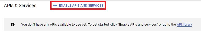 - Step 4: Click Enable Apis and Services button or select Library button on the left.