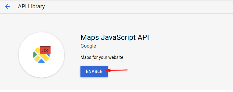 - Step 5: Find Maps JavaScript API and enable it as shown below.