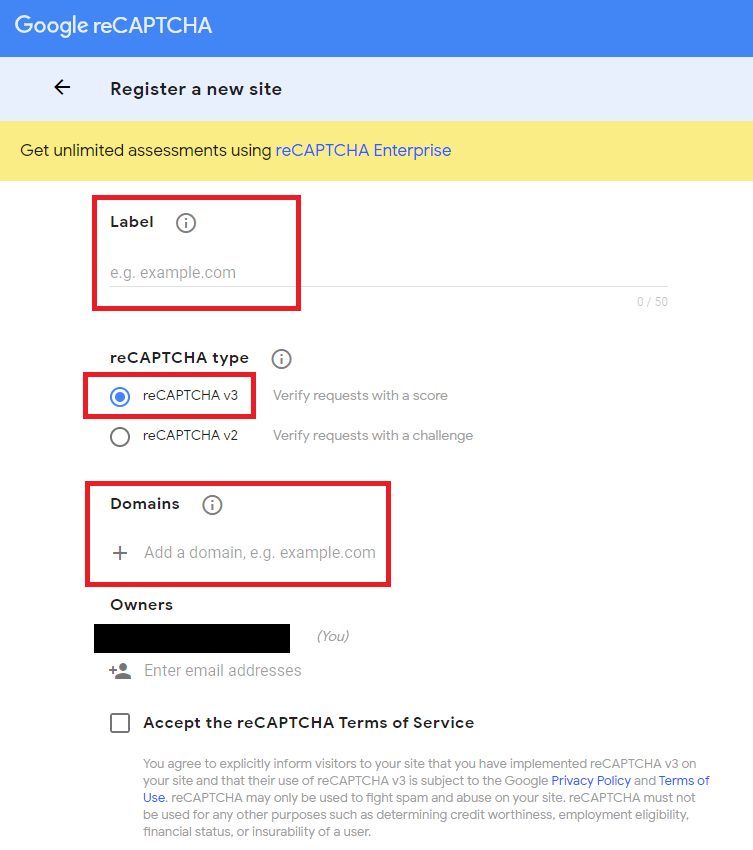 - Step 2: Enter Label to identify your reCaptcha keys.